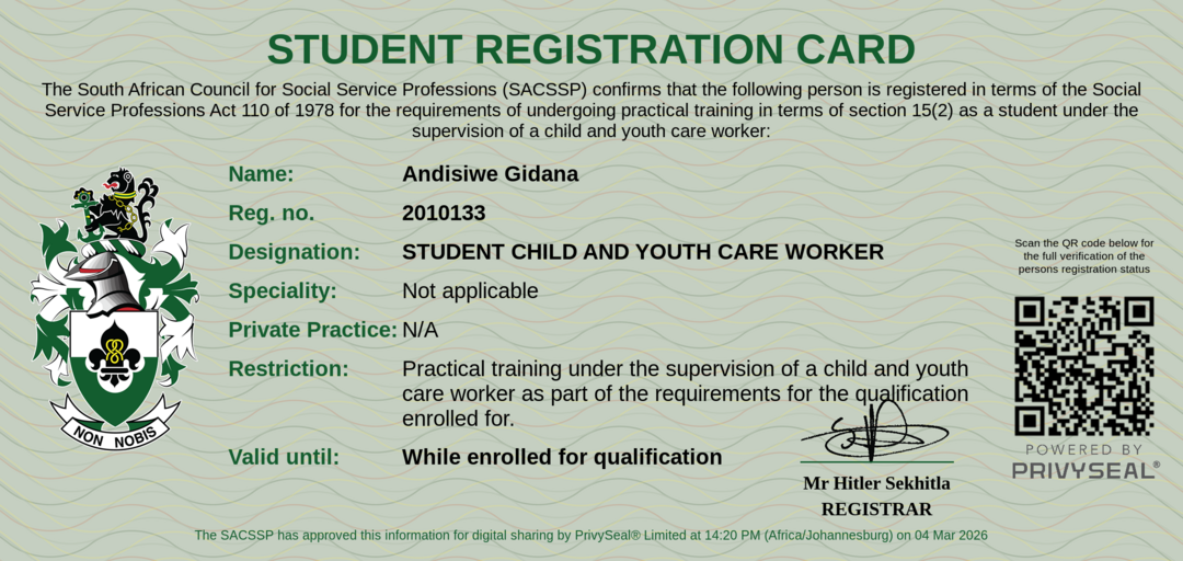 Old SACSSP Registration Number: 2010133