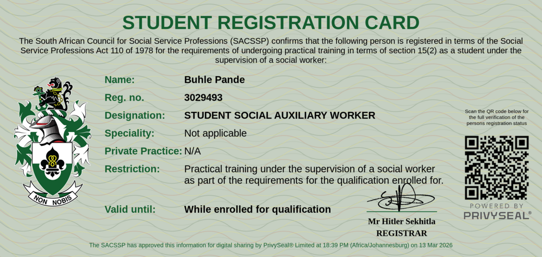 Membership Practice Card: https://privyseal.sacssp.co.za/f6b5e995-9d08-40c0-aa8d-487244bd166b