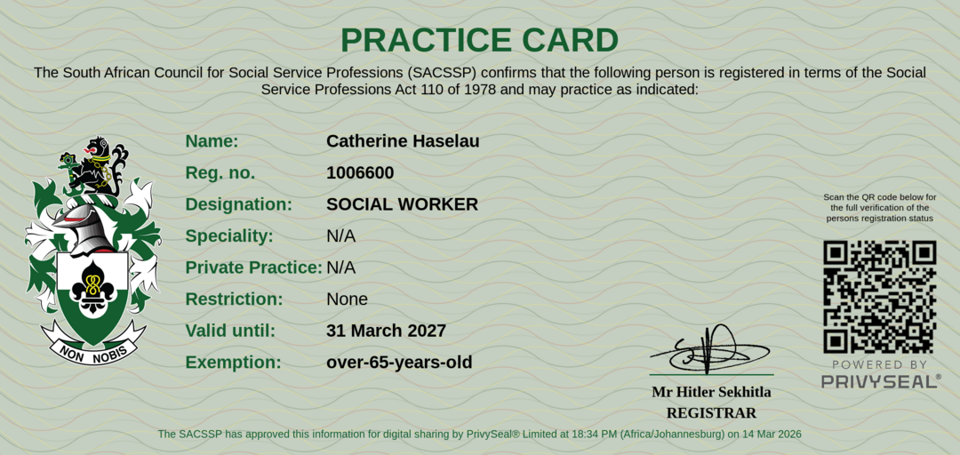 Old SACSSP Registration Number: 1006600