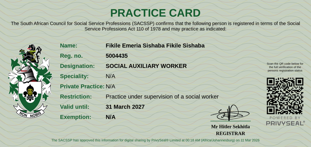 Old SACSSP Registration Number: 5004435