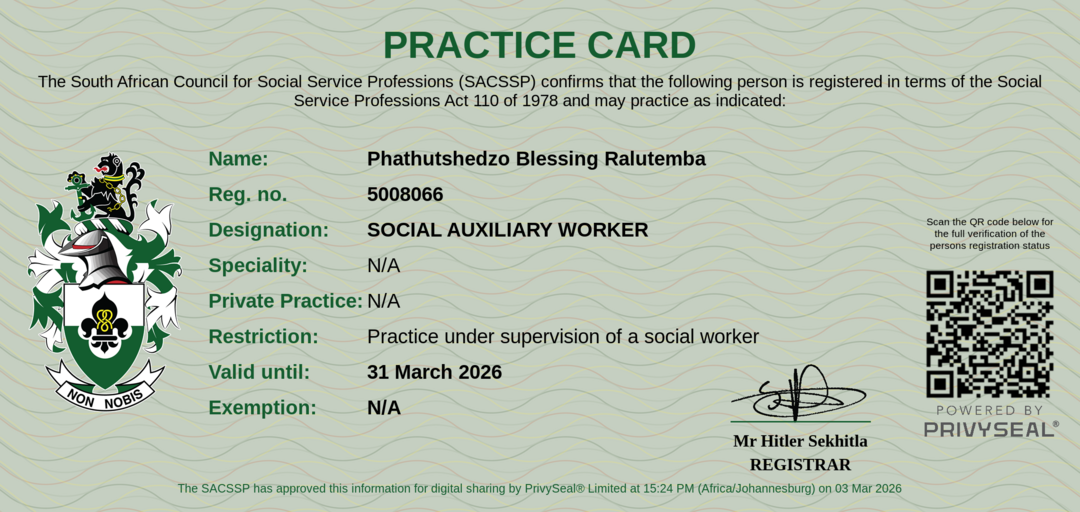 Old SACSSP Registration Number: 5008066
