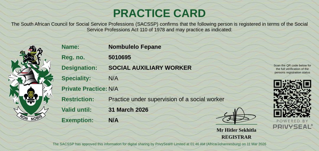 Old SACSSP Registration Number: 5010695