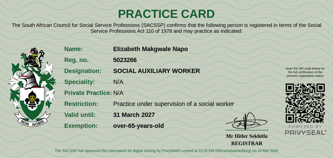 Old SACSSP Registration Number: 5023266