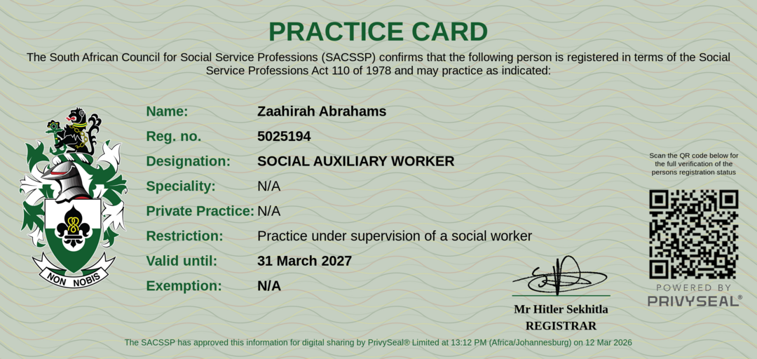 Membership Certificate: https://certificate.sacssp.co.za/33e97724-617a-4831-9397-5f33ea3b02e6