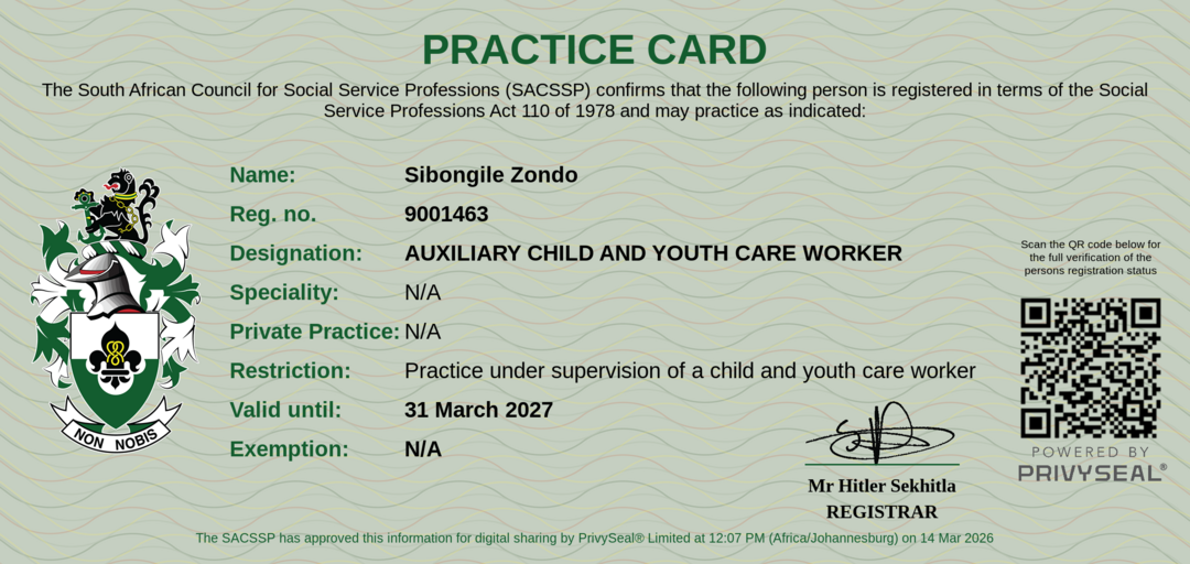 Old SACSSP Registration Number: 9001463