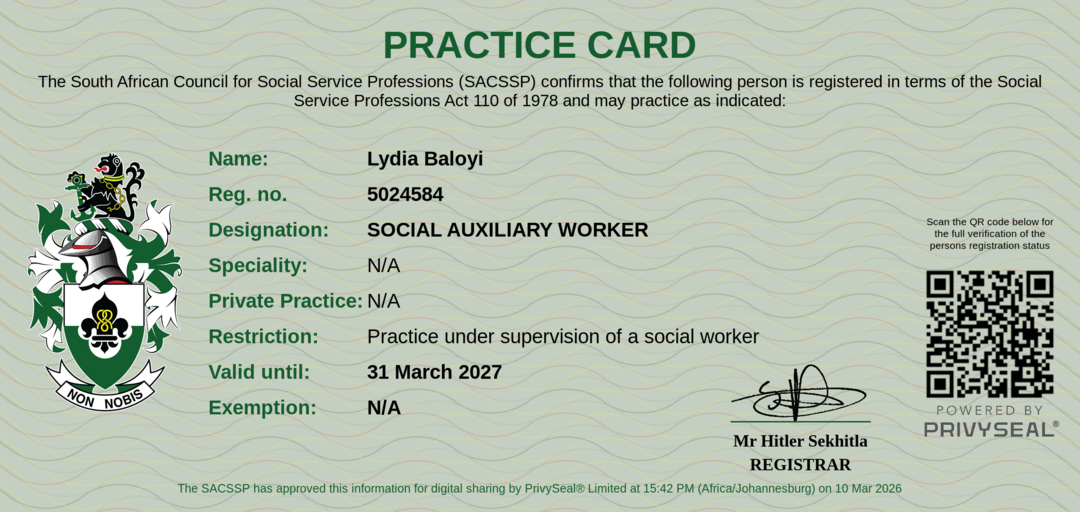 Old SACSSP Registration Number: 5024584