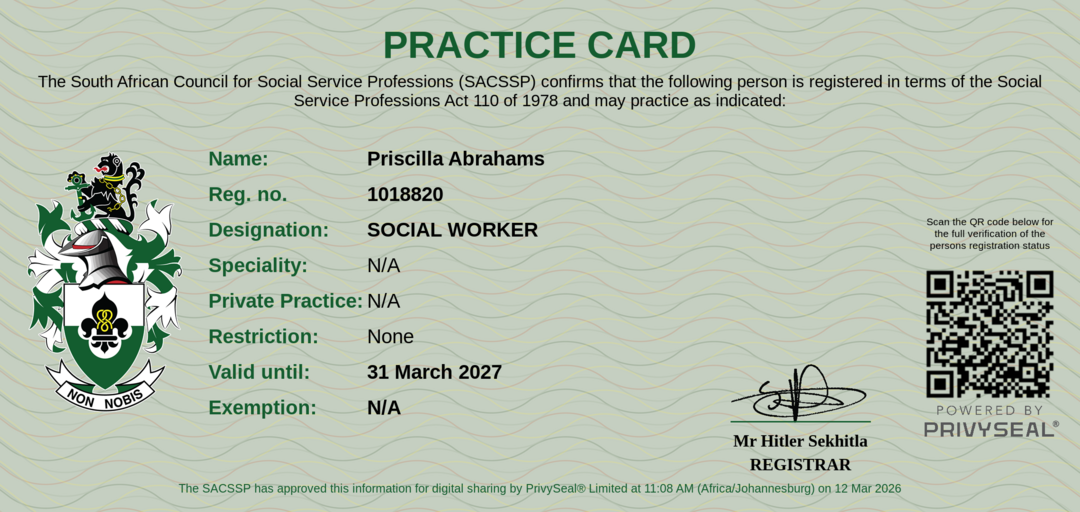 Old SACSSP Registration Number: 1018820