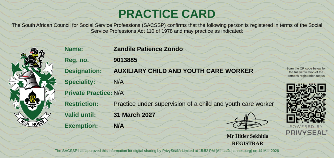 Membership Certificate: https://certificate.sacssp.co.za/ebe1cab8-be25-49a9-94a1-e36dbfec5329
