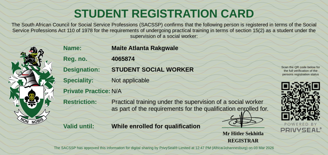 Membership Practice Card: https://privyseal.sacssp.co.za/31f7f935-3e68-44b2-8f1f-6d491b1487ad