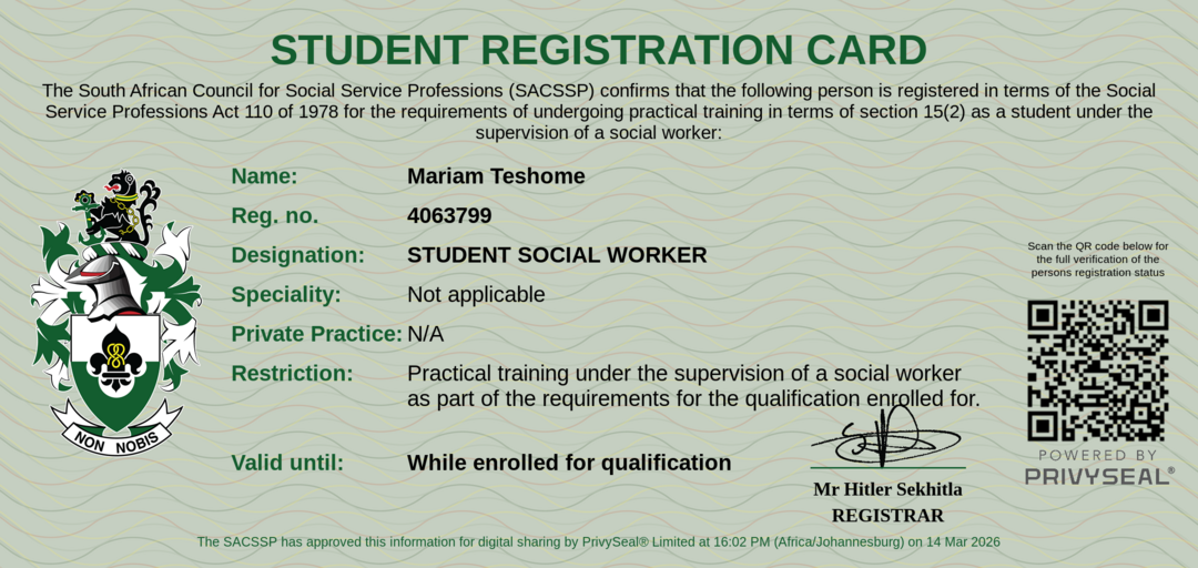 Membership Practice Card: https://privyseal.sacssp.co.za/ca2771b3-56e6-4c1a-9705-b82363bda457