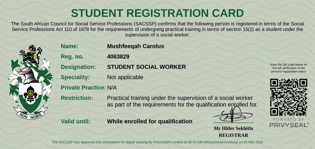 SACSSP Registration Number:
