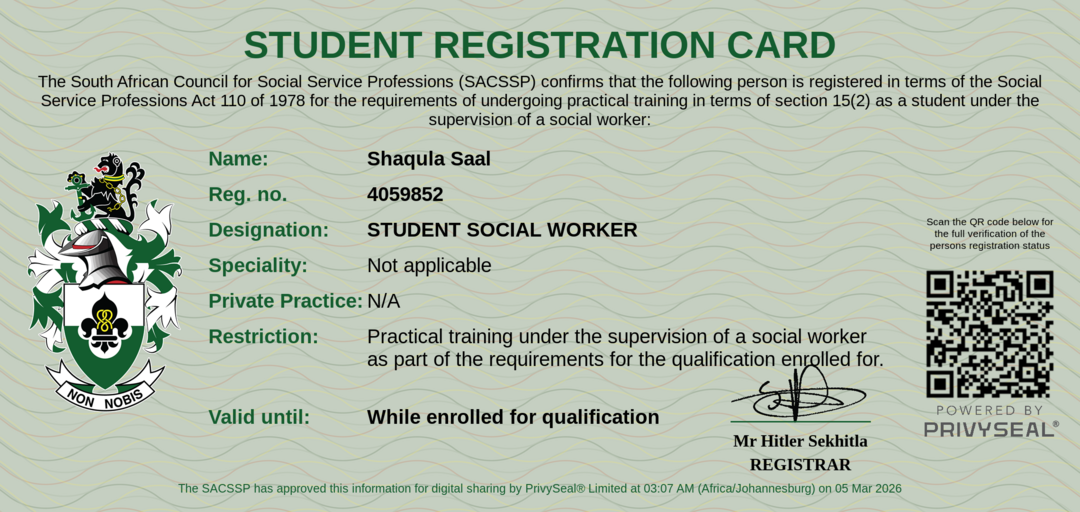 Membership Practice Card: https://privyseal.sacssp.co.za/80ff5569-eca0-4ae6-bd1d-d50e272a17ec