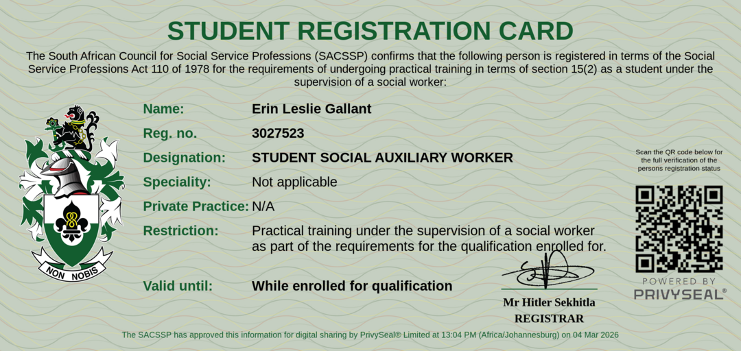 Old SACSSP Registration Number: 3027523