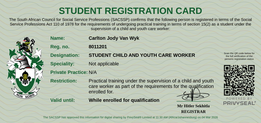 Old SACSSP Registration Number: 8011201